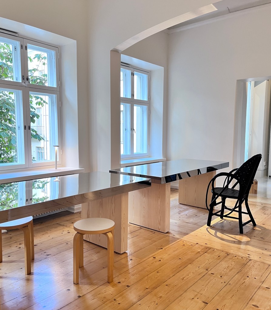 The Poet’s Blue is interior architect Anne Kosonen’s showroom home at Mariankatu 7 G 3 in the centre of Helsinki. The building was designed by G.T.P. Chiewitz and constructed in 1861 for its merchant owner Henrik Borgström (1799-1883) and his family. Its location, opposite the Ritarihuone, also designed by Chiewitz, and the nearby Presidential Palace and the Prime Minister’s Office, places the building in esteemed company. The apartment’s 2023 renovation was designed by Anne Kosonen in collaboration with Seven Days Studio, a thoughtful design platform where research and practical knowledge combine in solving design problems.